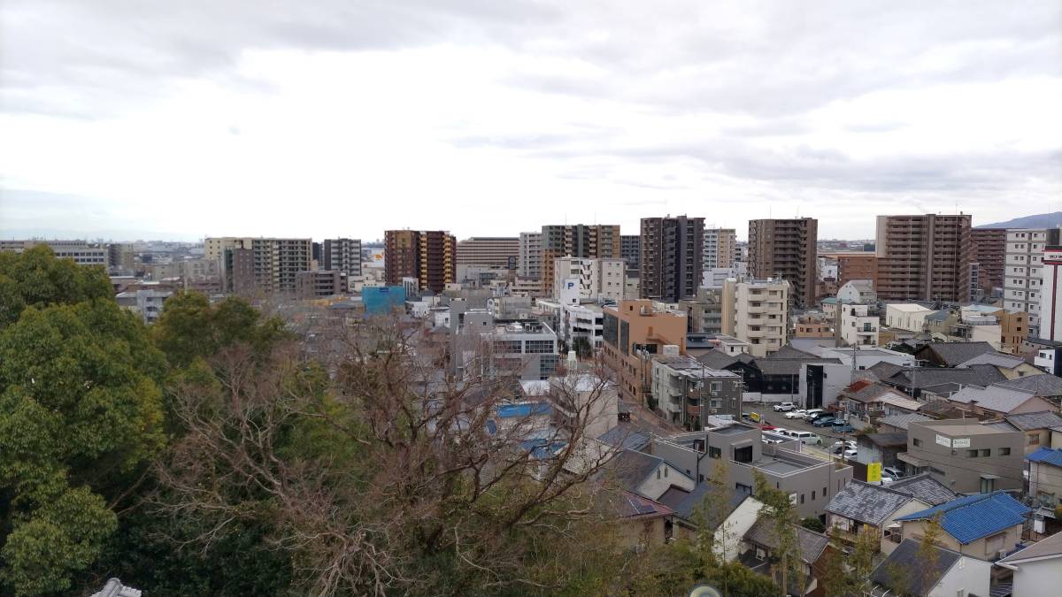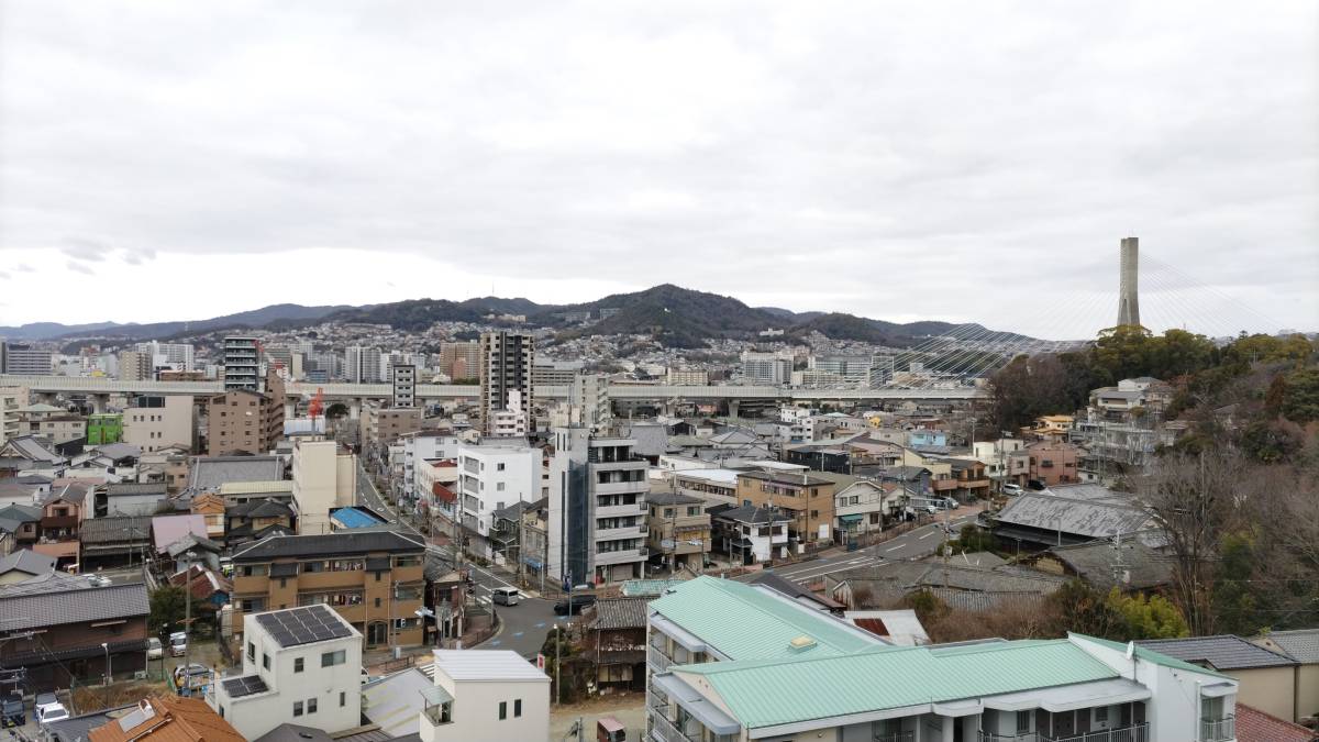 階上の展望から川西市方面を眺めた景色です。丘陵地を切り開いて宅地開発されたことが良く分かります。