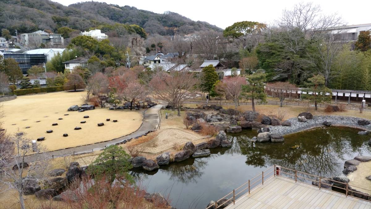 眼下にはお庭が広がります。背後は五月山です。