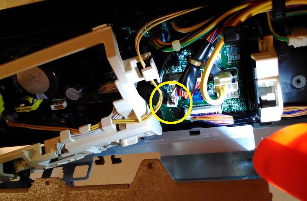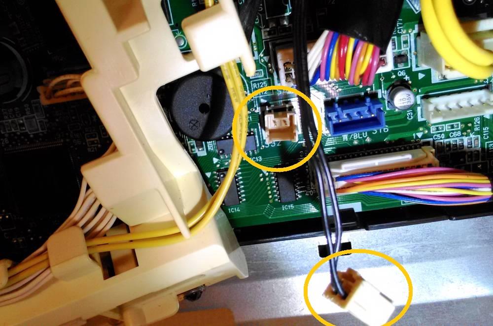 センサーからの細いコードを辿ると、メイン基盤へ繋がっています。