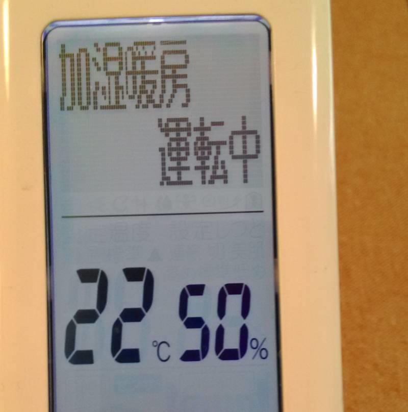 リモコンの設定温度は「22℃」で、湿度は「50%」です。