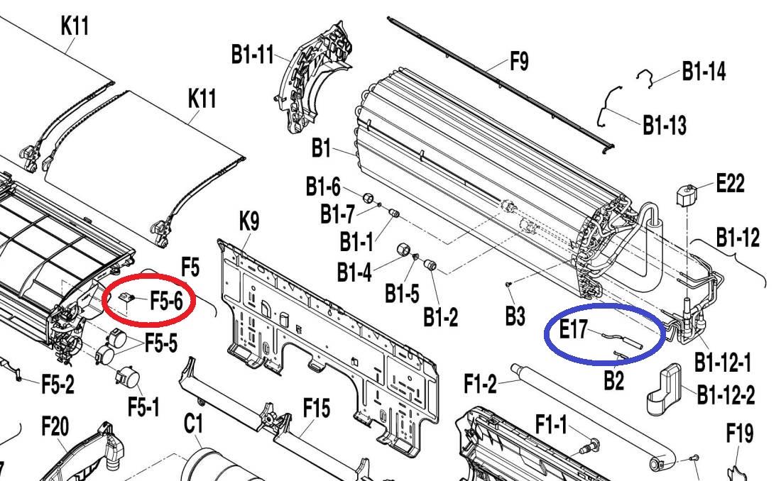 この他に、それらしいパーツとして『湿度センサー組立品』(部品番号:1966499 )もありました。拡大図で「F5-6」(赤丸)です。