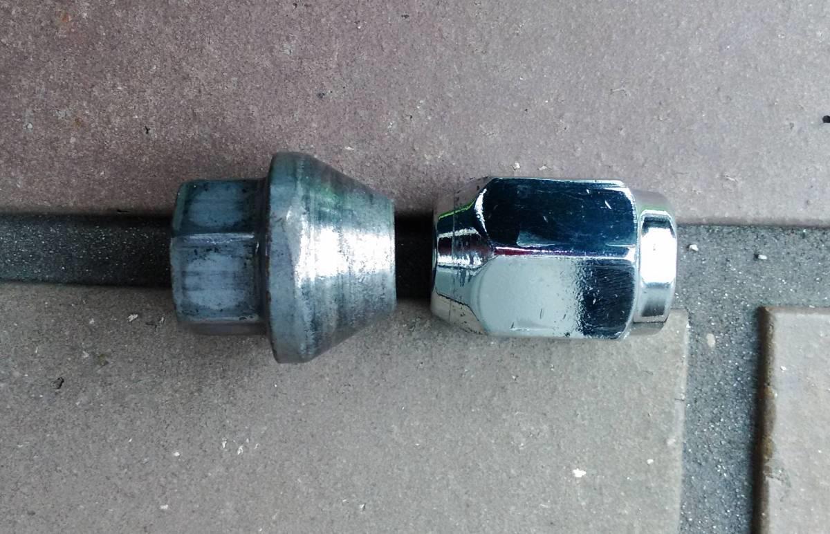 VOLVOの純正ホイールナットは、この通り「傘」部分が大きなものです。(下の写真の左側です)