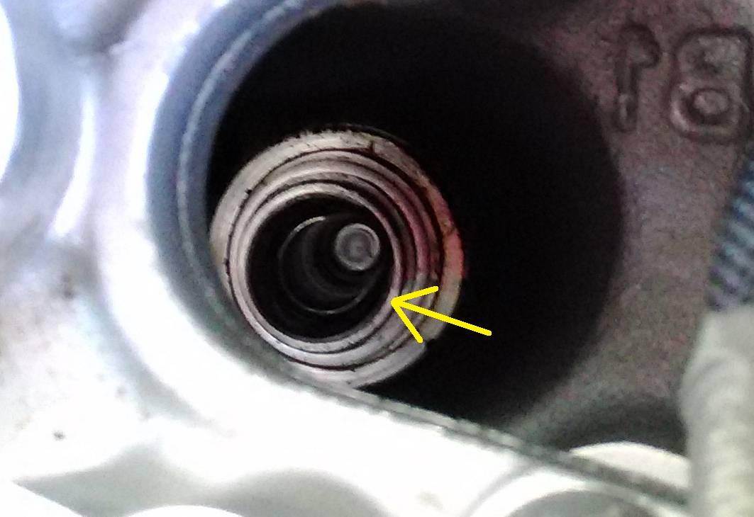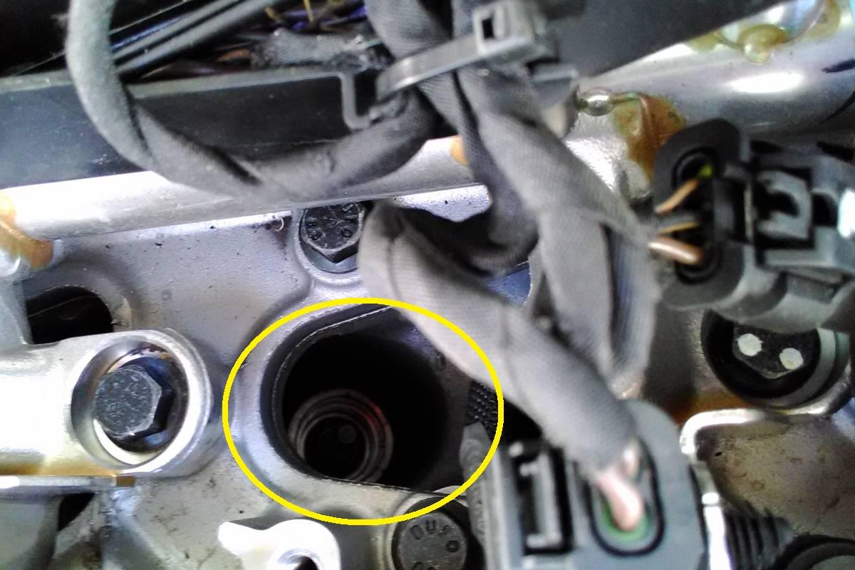 穴は斜めに開いていて、覗き込むと奥にプラグの頭が見えます。