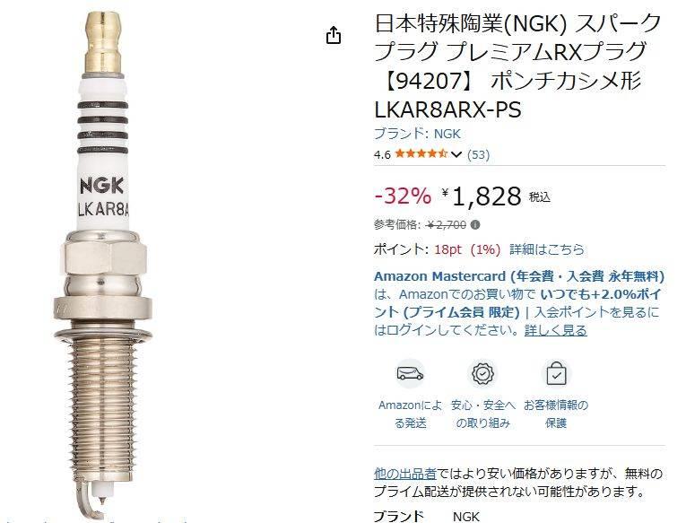 しかも、DENSO「ZXE24HLR7」は1本「2,520円」でしたが、NGK「LKAR8ARX-PS(プレミアムRX)」は「1,828円」と、4本で2,800円近く安価です!(どちらも4本なら送料無料)
