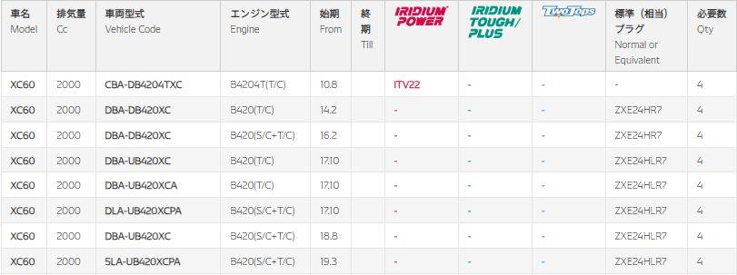 しかも、DENSO「ZXE24HLR7」は、以下の通りほぼボルボ専用のプラグです。
