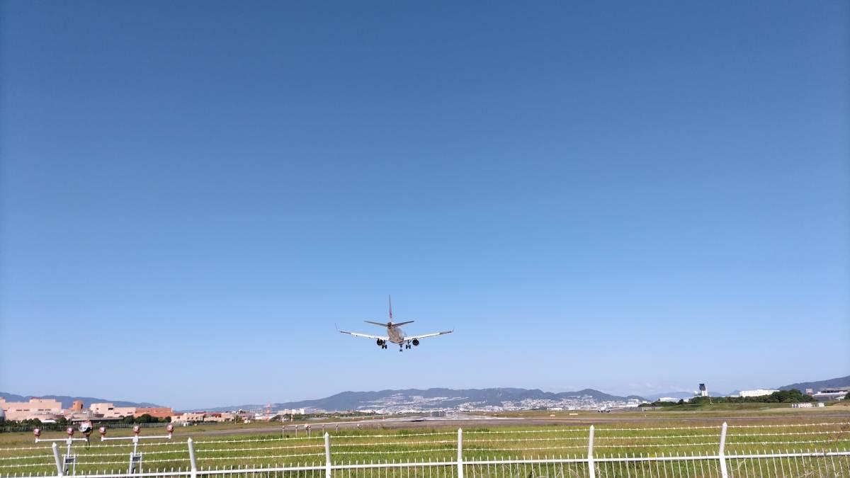 最近お気に入りの愛車(電動ママチャリ改)を駆って、伊丹市の「千里川の土手」に行ってみました。大阪空港に着陸する飛行機を間近で見ることができる有名なスポットです。