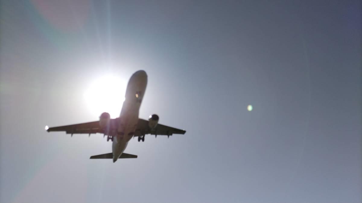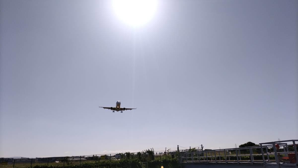 凄いですね。本当に頭をかすめるほどの高度でジェット機が通り過ぎて行きます。(嬉)
