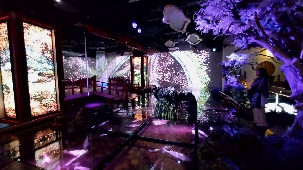 「和と灯の間」エリアです。刻々と変化する映像と光と音楽で、日本の美を表現しているそうです。