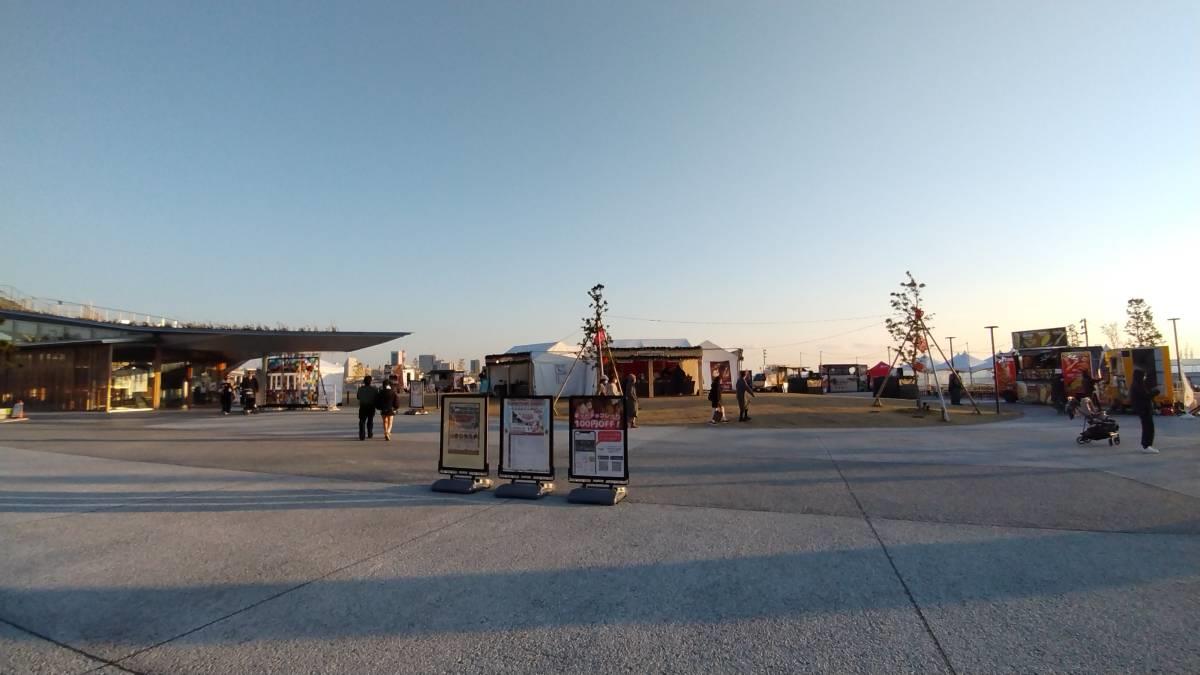 クリスマスマーケットは本番前のためちょっと迫力不足でしたが、夕暮れのベイエリアの景色を楽しめました。(嬉)