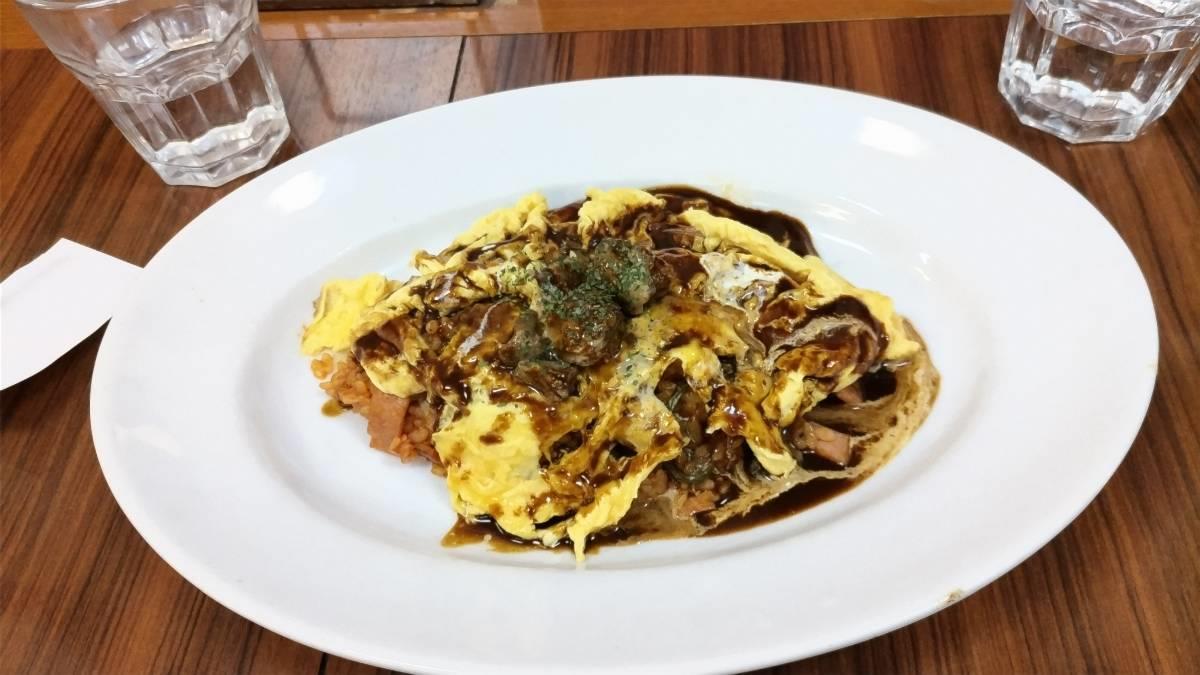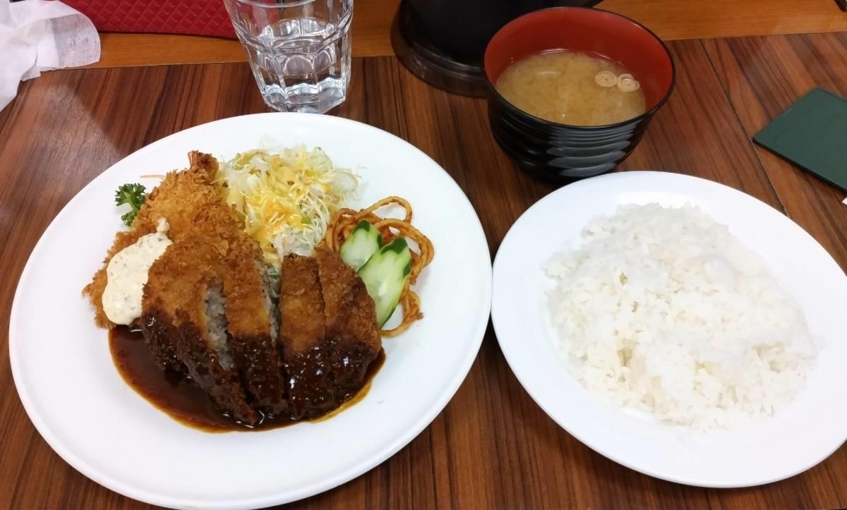 オムライスは、デミグラスソースと盛り沢山の具材が特徴。洋食セットは、ミンチカツ、ヒレカツ、エビフライ、スパゲッティに味噌汁という豪華版。お腹一杯になりました。(笑)