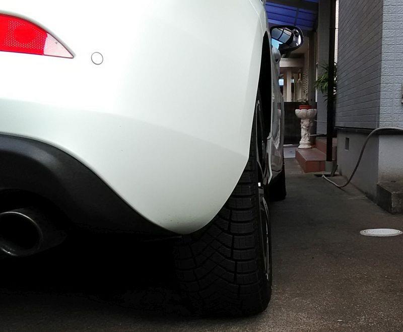 一方、SUV対応のホイールなので重量があるうえ、オフセットが増えたことで、タイヤのドタバタ感が増しました。(汗)