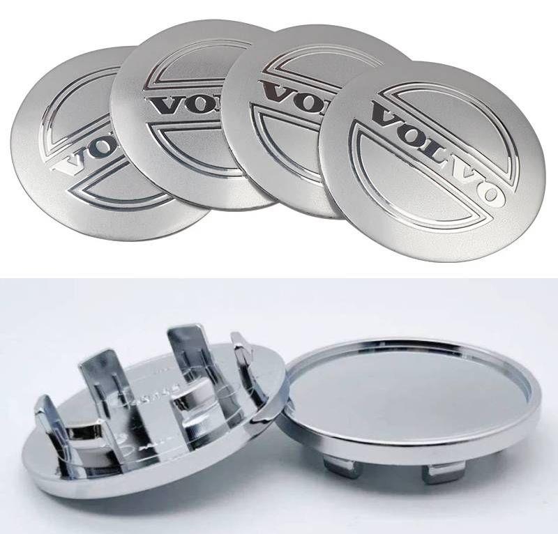 今度はセンターキャップを「VOLVOマーク」に変更してみました。「外径62mm 内径47.5mm」のキャップと、「ボルボマークの56mmアルミステッカー」をAliで購入して組み合わせました。