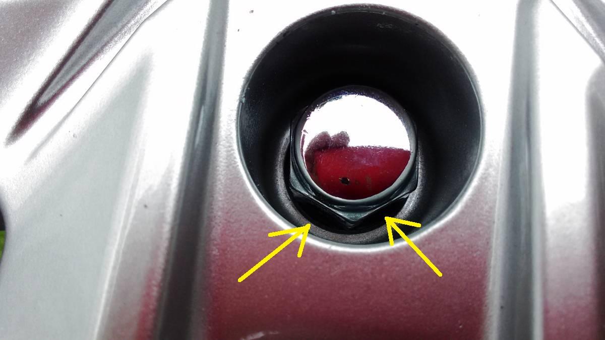 このため、ホイールの座面にナットの角部分の傷がついてました。(汗)