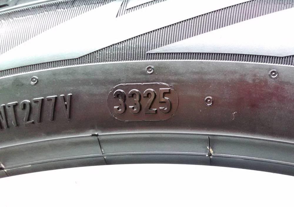 タイヤの製造コードは4本とも「3325」。今年7月後半に製造されたできたて新品のタイヤです。(嬉)